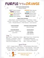 PURPLE rhymes with ORANGE “a colorful musical” written my Patrick Kasper is based on his book of the same name. It was first performed on January 25th 2020. Patrick wrote the script and 12 original songs for the show.